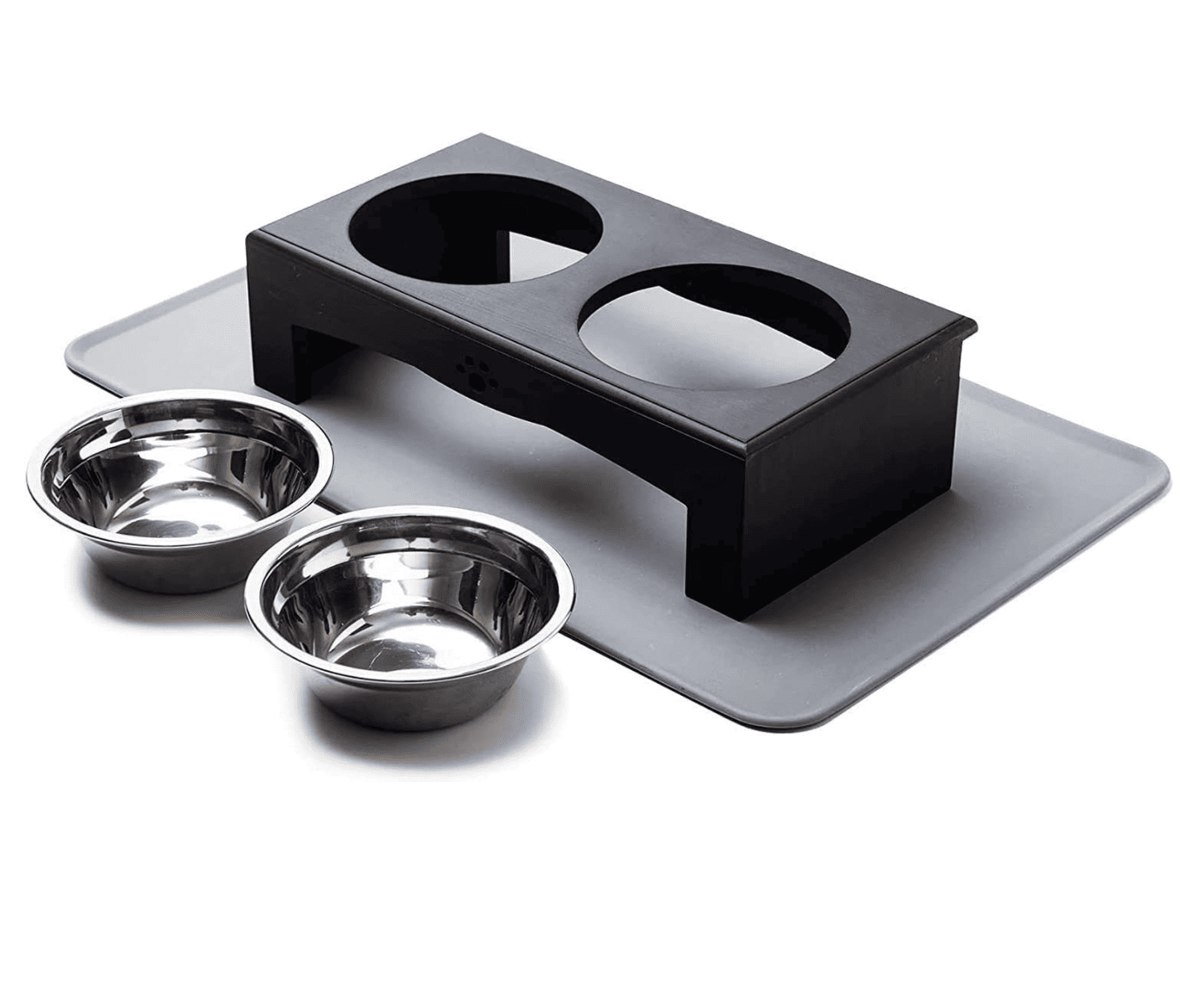 Stainless Steel Dog Food and Water Bowls with Stand and Silicone Mat